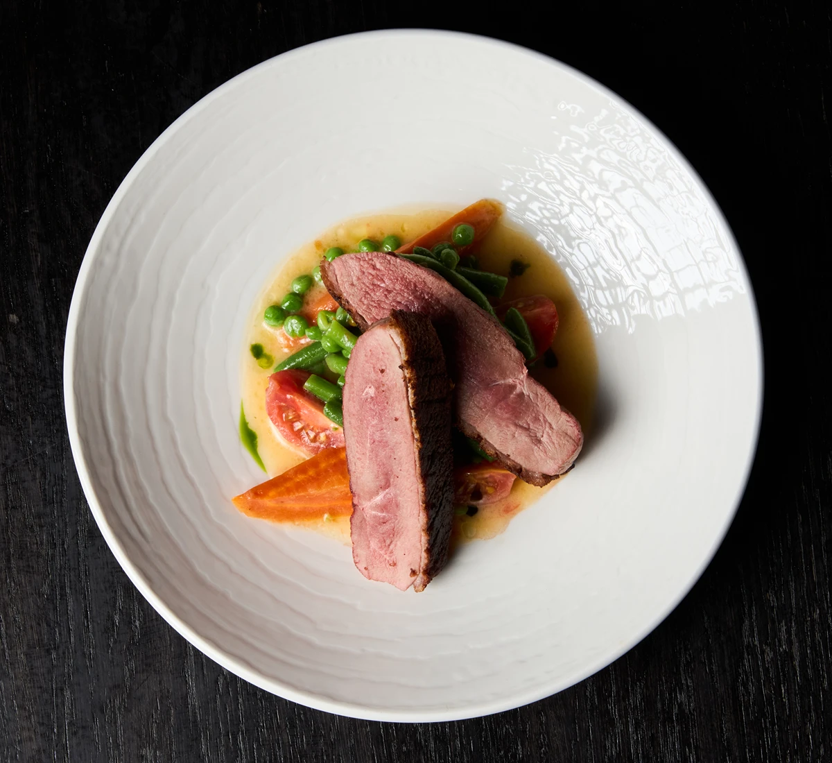 Ніжне качине філе, смажене в хоспері. Гарнір: морква, шпарагівка ,…