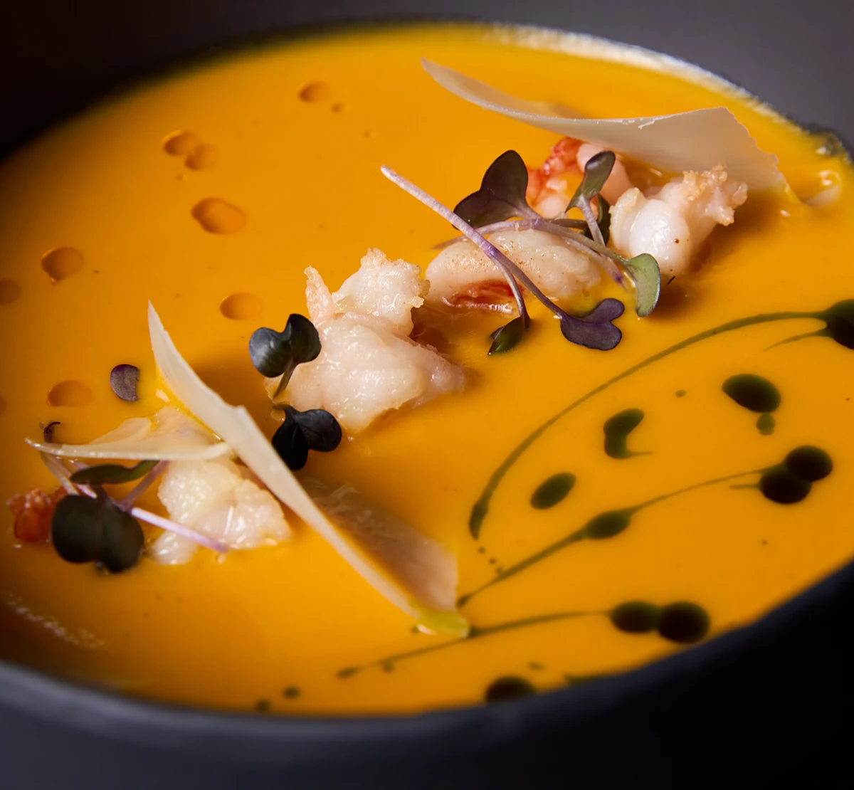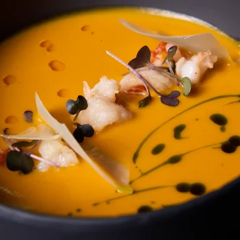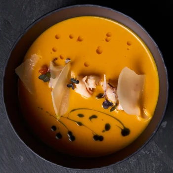 Гарбузовий крем-суп з карамельною креветкою