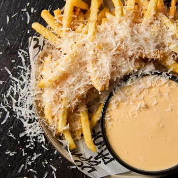 Картопля фрі, пармезан, сирний соус з трюфелем