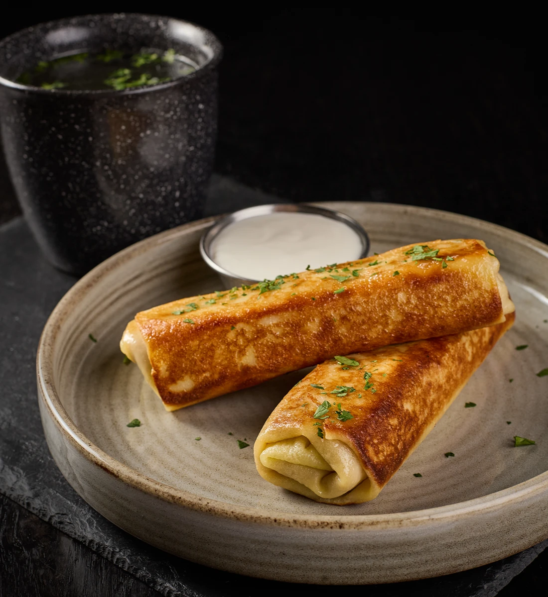 Млинці з м’ясом та курячим бульйоном