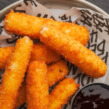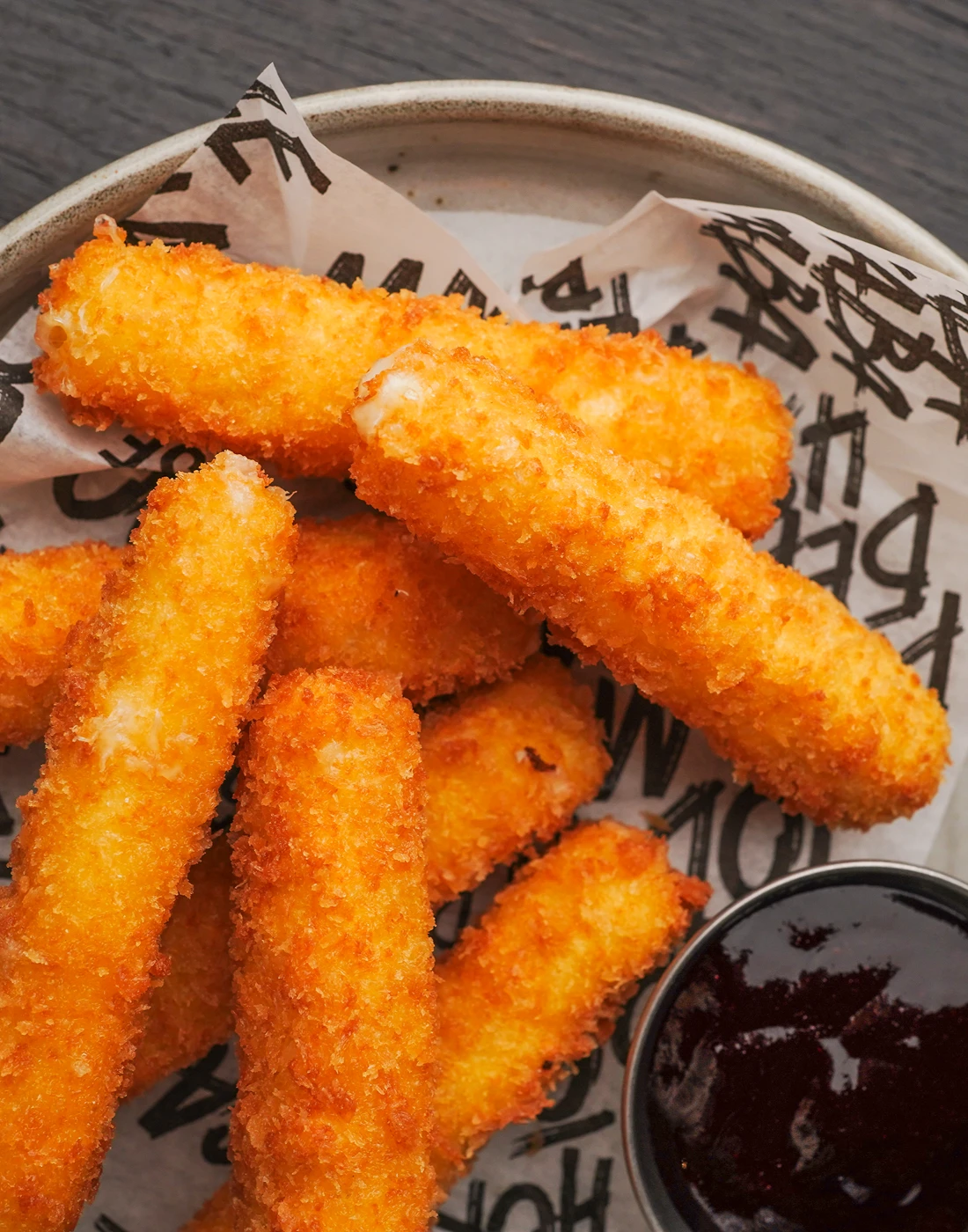 Чеддер в паніровці, чорничний соус на основі червоного вина
