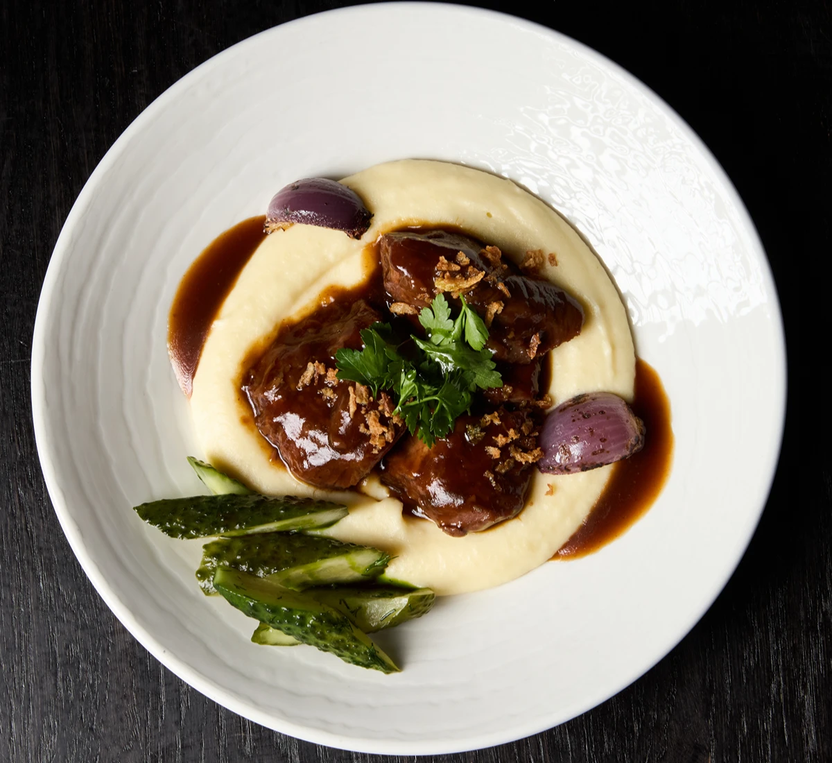Томлена – Соус демігляс, картопляне пюре, мускатний горіх, пармезан, малосольні…