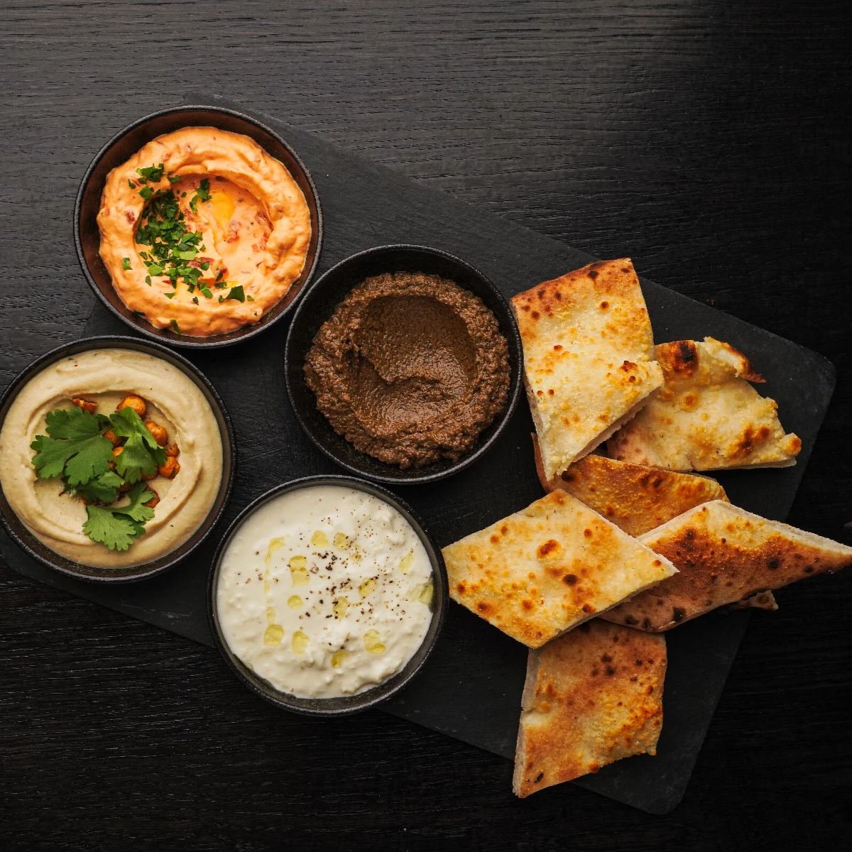 Страчатела, хумус, мезе на основі крем сиру та солодкого перцю,…