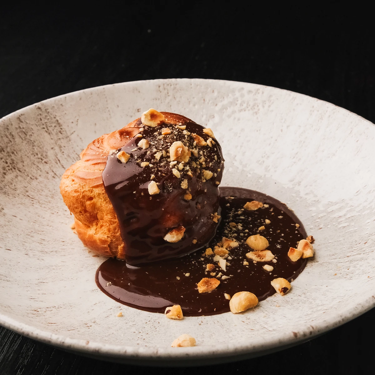 Мега профітроль, дофіга заварного крему Поливається шоколадним соусом і фундуком